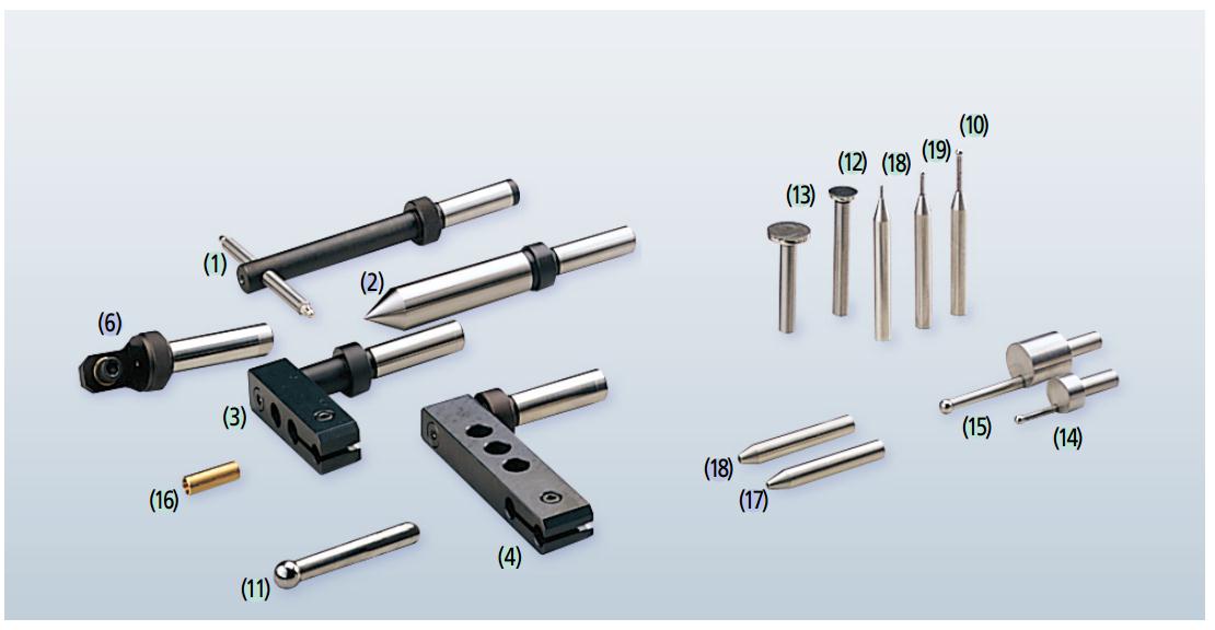 (1) 12AAC072: 深度測頭 (2) 12AAC073: ?20mm錐形測頭 (3) 12AAA792: 指示表(?8mm軸套)夾 (4) 12AAA793: 測頭延長夾(85mm) ●12AAB136: ?10mm圓柱型測頭 (6) 932361: Mu-Checker杠桿測頭夾 需要增加配重(共4塊) ●12AAF666: ?1mm球形測頭 (同軸型) ●12AAF667: ?2mm橄欖球型測頭 (同軸型) (8) 957261: ?2mm 球形測頭 (同軸型) (9) 957262: ?3mm 球形測頭 (同軸型) (10) 957263: ?4mm 球形測頭 (同軸型) (11)12AAB552: ?10mm球型測頭, L=55mm(同軸型) |