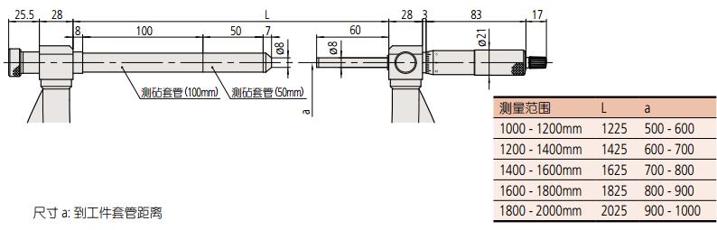 平行度 : (2+R/100)μm, R 為*大測量范圍 (mm)