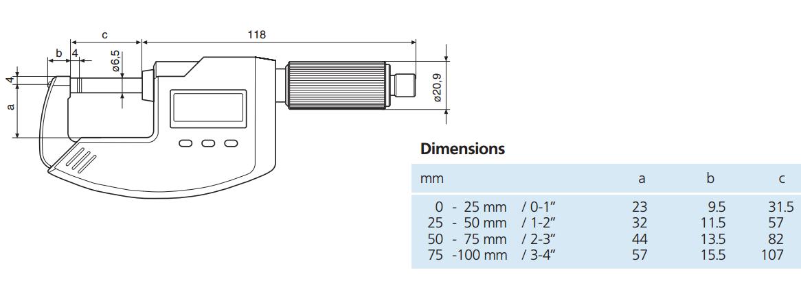 測量范圍 inch |