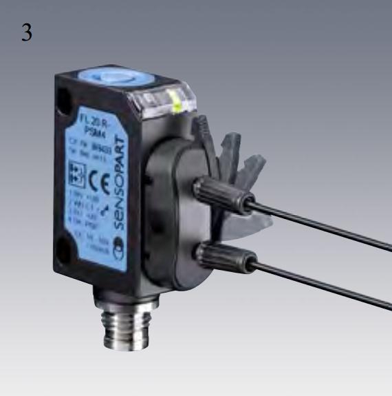 光纖的安裝/固定 ※傳感器固定后也可以替換光纖 ※無需其它工具輔助 ※安裝固定步驟: 1.打開夾緊把手 2.插入光纖(透過O型圈) 3.關(guān)閉夾緊把手 |