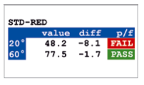 所有被選擇的角度在同一個(gè)點(diǎn)上測量,并立即顯示測量結(jié)果 包括:統(tǒng)計(jì)、差值、合格/不合格結(jié)果。