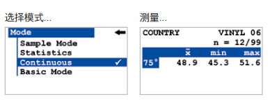 智能測量模式滿足不同任務(wù)的需要 不同的工作需要不同的工具。使用儀器上的滾輪能簡單快速 地顯示所需功能-甚至無需通過電腦: 基本測量模式可為您快速簡單地測量少量樣品的工具。 統(tǒng)計(jì)測量模式并不僅僅顯示平均值,而且統(tǒng)計(jì)數(shù)據(jù)可用于判 斷是否有測量誤差或者用于樣品的均質(zhì)性判定。您可自定義 所有想看到的數(shù)據(jù):平均值,標(biāo)準(zhǔn)偏差,范圍,*大值/*小 值.. 差值模式允許您定義一個(gè)帶有合格/不合格允差的參考值,所 有實(shí)測值將與所選擇的參考值進(jìn)行對比。合格/不合格將通過 高分辨率的彩色屏顯示出來-理想的生產(chǎn)控制模式。 連續(xù)測量模式是快速檢查大面積樣品的均質(zhì)性z有效的方 法。您確定好測量間隔后將微型光澤儀在樣品上持續(xù)滑行, 即刻得到連續(xù)測量結(jié)果。測量結(jié)束后,屏幕顯示平均值、* 大/*小值的范圍。 |