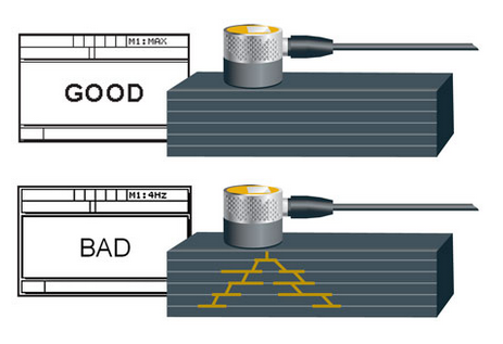 超聲波脈沖從斷裂處反射,產(chǎn)生比校準點更早到達的回波。 儀器認定這是一個分層。