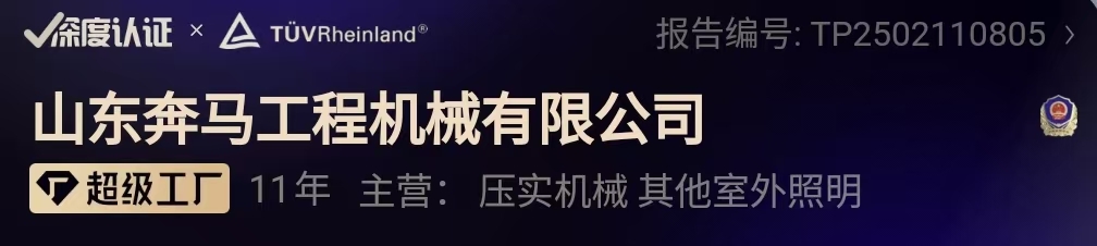 山東奔馬憑借卓越的生產(chǎn)實力和優(yōu)質的產(chǎn)品,榮獲阿里深度認證的“超級工廠”稱號,同時被百度認證為“實力工廠”,充分彰顯了其在行業(yè)中的領先地位。公司專注于研發(fā)與生產(chǎn)小型壓路機、移動照明車、液壓動力站等設備,以創(chuàng)新技術和精湛工藝為客戶提供高效、可靠的解決方案。我們誠摯邀請各界朋友蒞臨工廠參觀考察,親身體驗我們的生產(chǎn)流程與產(chǎn)品性能。山東奔馬將以專業(yè)的態(tài)度和優(yōu)質的服務,與您攜手共創(chuàng)美好未來!歡迎隨時聯(lián)系,期待與您合作!全國免費服務電話:400-6537-859