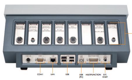 1個COM1 - RS232接口、1個LAN網(wǎng)絡(luò)連接 用于鍵盤,鼠標(biāo),打印機的4x USB連接 1個用于PC的USB連接 多功能連接器,帶有上限和下限的信號輸出,外部啟動 插座,用于連接例如 用于外部觸發(fā)測量捕獲的按鈕 通過AC適配器供電12V / 1.2A |