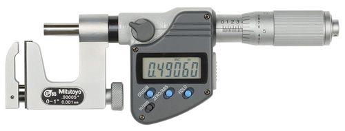 Mitutoyo 317數字式Uni-Mike 可互換的anvil型千分尺的測量范圍為0-1”/ 25.4mm,帶有磨光鏡面的盤型測砧。特點包括IP65防塵防水,原裝,數據保存功能,SPC數據輸出,LCD顯示,英寸/公制轉換。這些千分尺用于測量油管的厚度、肩邊距、鉚釘頭高度等。提供了一個平面測砧和桿型測砧。