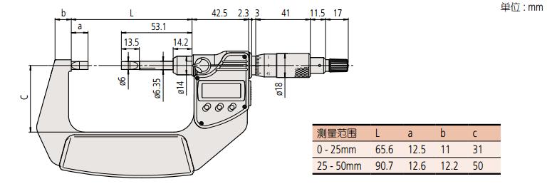 測砧和心軸的端面為薄片型,可用于測量花鍵軸、鍵槽等不易測量位置的凹槽尺寸。