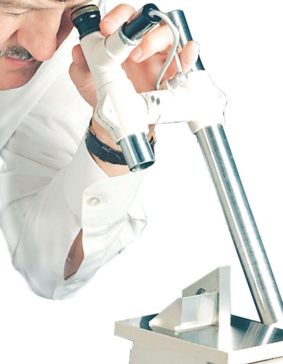 Minidekkor標(biāo)配暗視場分劃板,可在暗背景上形成有照明的十字線圖像。所以它具備從未鍍銀玻璃等低反射率表面以及直徑僅3毫米(0.125英寸)的表面獲得清晰圖像的優(yōu)勢。Minidekkor如果結(jié)合使用顯微鏡物鏡和線性測量裝置,可測量透鏡或曲面鏡面的半徑,例如測量玻璃殼中封裝的電極的間距。這款自準(zhǔn)直儀的標(biāo)配不含固定裝置,所以在訂購時(shí)應(yīng)考慮具體的用途,選擇適當(dāng)?shù)墓潭ǜ郊?/span>